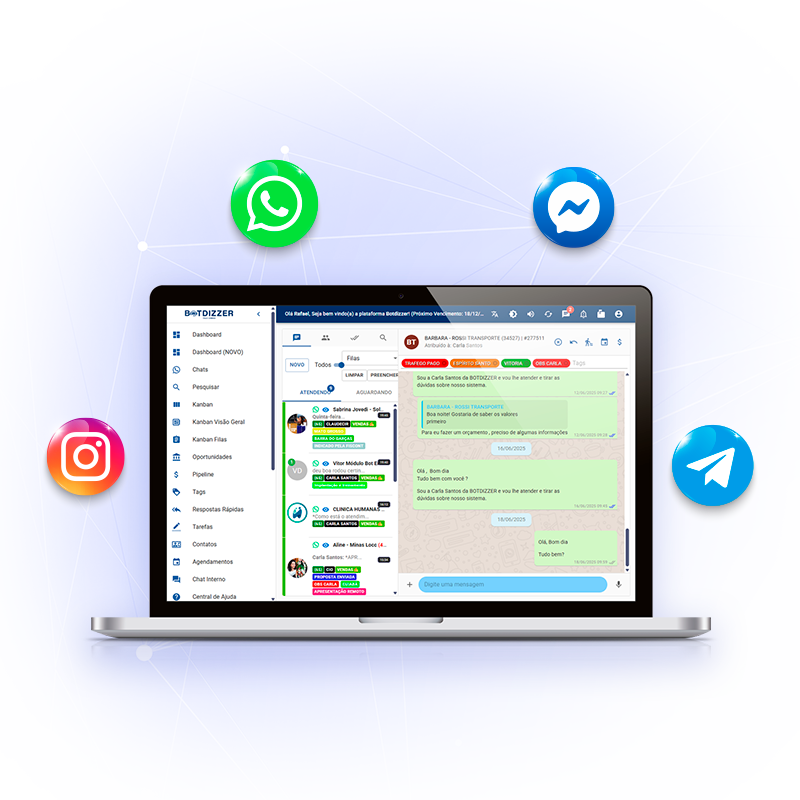 Sua parceira no gerenciamento de canais digitais como WhatsApp, Instagram, Messenger e Telegram. Atendimento omnichannel, automação inteligente e integração com seus sistemas.